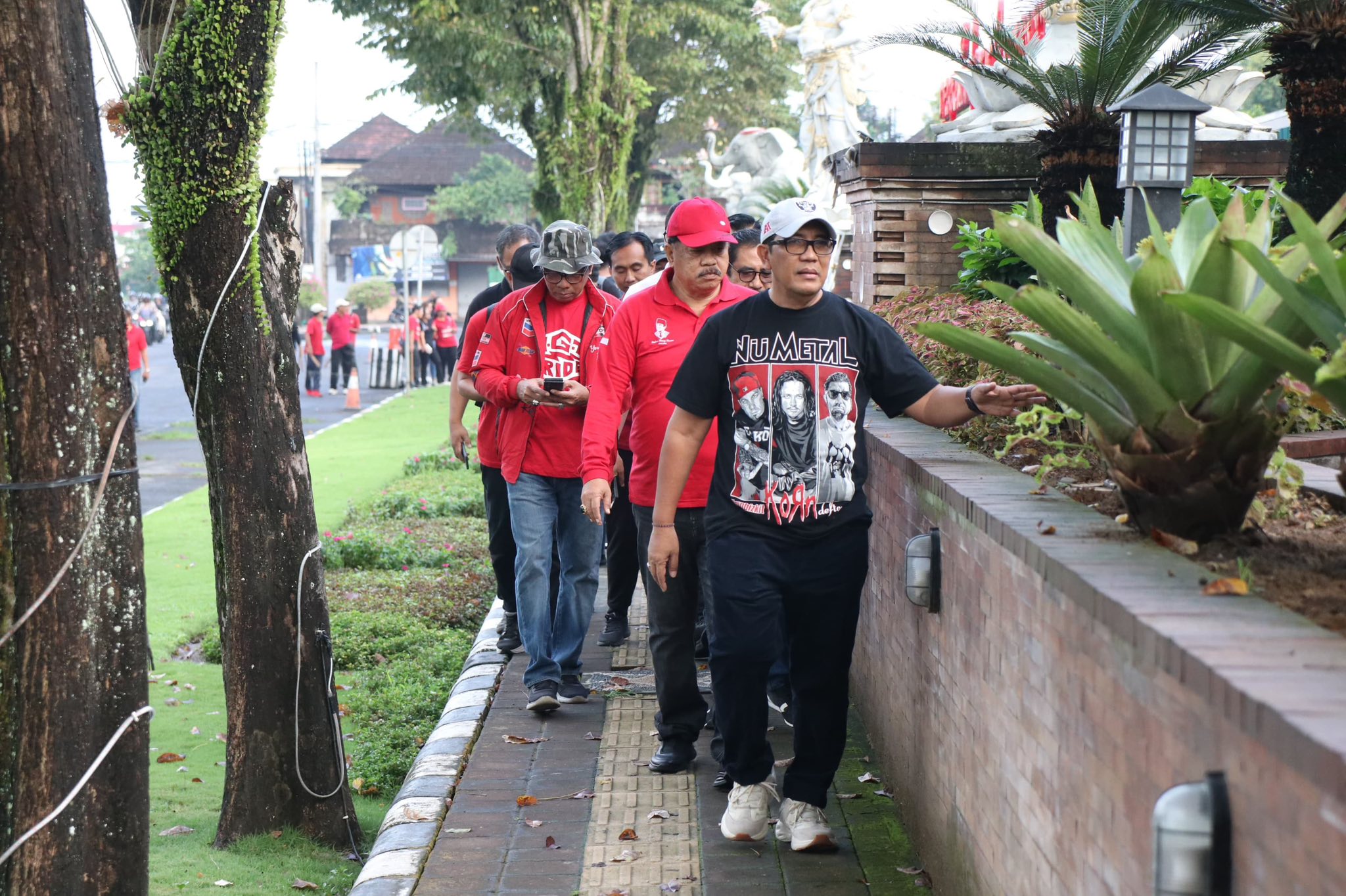 Bupati Tabanan, Dr. I Komang Gede Sanjaya, S.E., M.M. berjalan dari Kantor Bupati Tabanan menuju Lapangan Alit Saputra saat kegiatan Jumat Bersih.