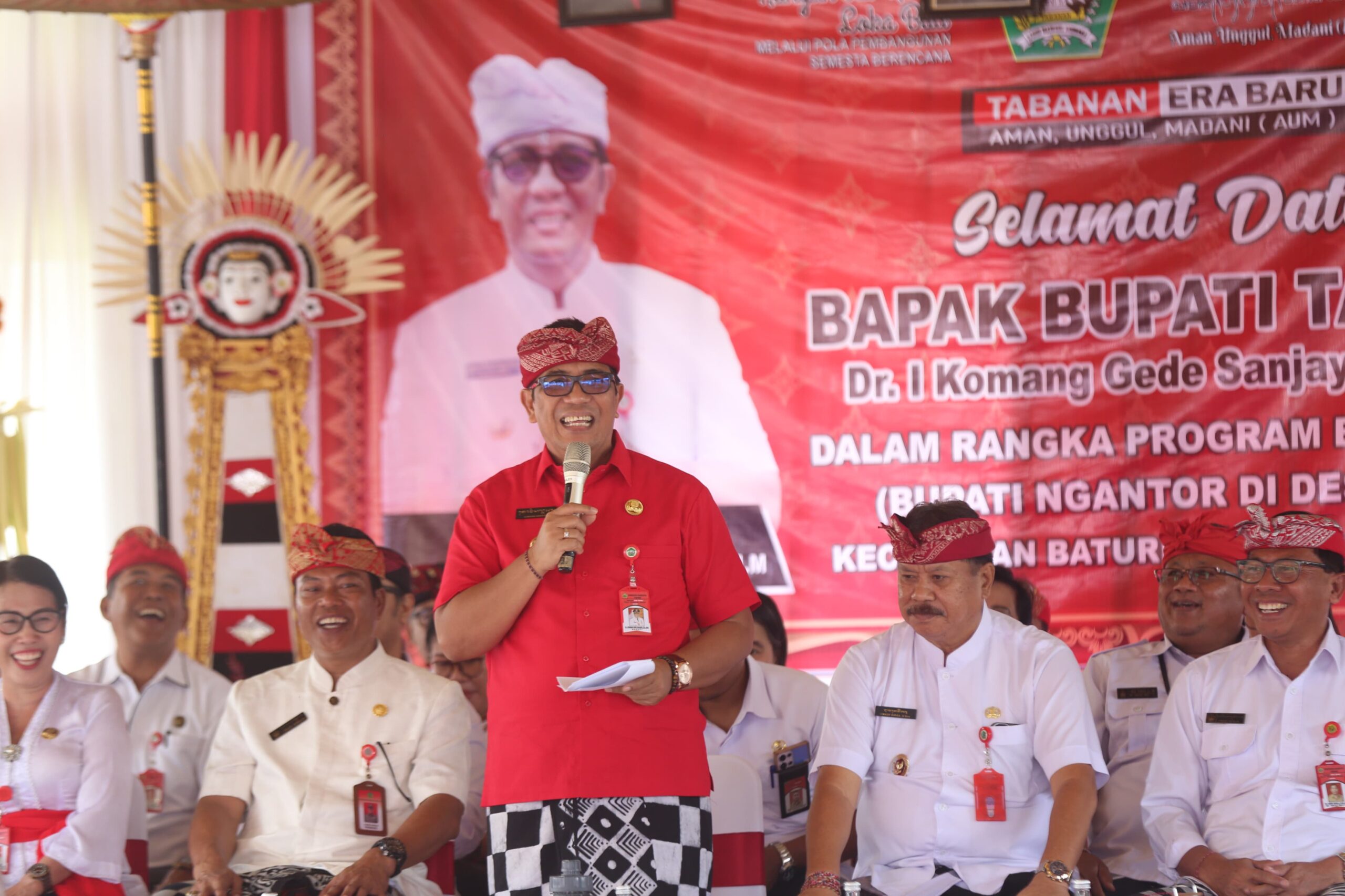 Instruksi tersebut disampaikan Bupati Tabanan saat menghadiri kegiatan Bupati Ngantor di Desa atau Bungan Desa di Desa Apuan, Kecamatan Baturiti, pada Kamis, 22 Mei 2025. Dalam kesempatan itu, Bupati menegaskan pentingnya peran aktif semua elemen pemerintahan dalam mendukung program pengelolaan sampah yang berkelanjutan.