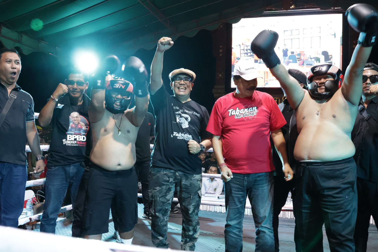 Kepala BPBD Tabanan dan Kepala Dinas Kebudayaan yang juga Plt. Kadis Pertanian tampil sebagai petarung ekshibisi, memancing antusiasme masyarakat yang memadati area pertandingan. Kehadiran mereka di atas ring memberikan warna berbeda sekaligus memperlihatkan kedekatan pemerintah daerah dengan masyarakat.