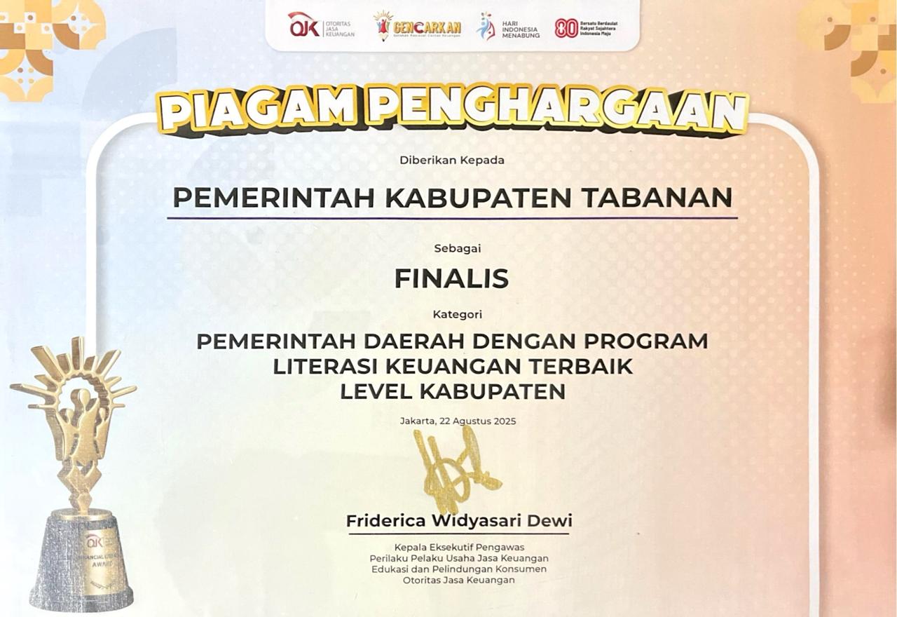 “Raihan ini menjadi bukti bahwa program literasi keuangan di Tabanan berjalan efektif dan mendapat pengakuan sebagai yang terbaik dalam penilaian OJK Bali,” ujarnya.