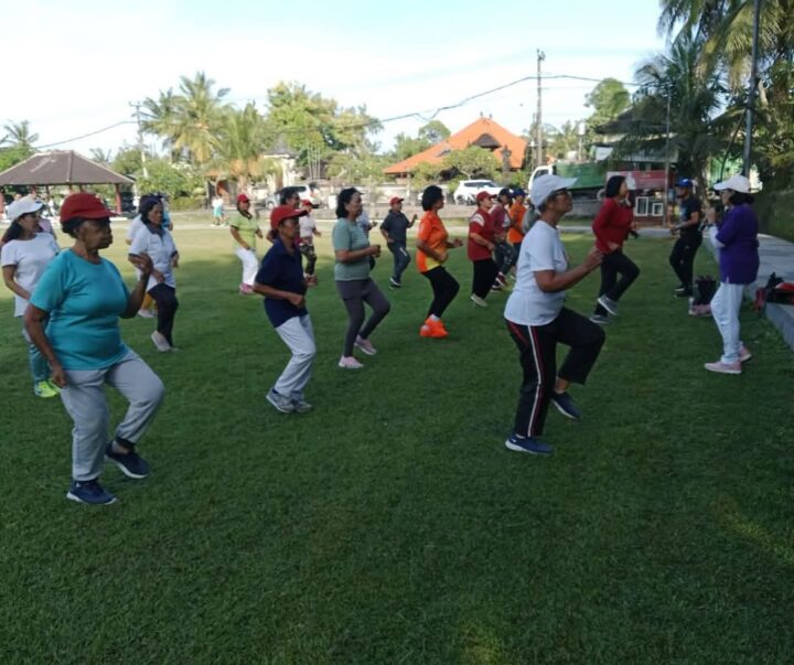 Kegiatan Senam Lansia di Lapangan Wagimin, Banjar Jambe Baleran, Desa Dajan Peken, Tabanan.