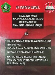 - MADANI YAITU : MEWUJUDKAN MASYARAKAT TABANAN YANG SEJAHTERA, SEHAT JASMANI MAUPUN ROHANI